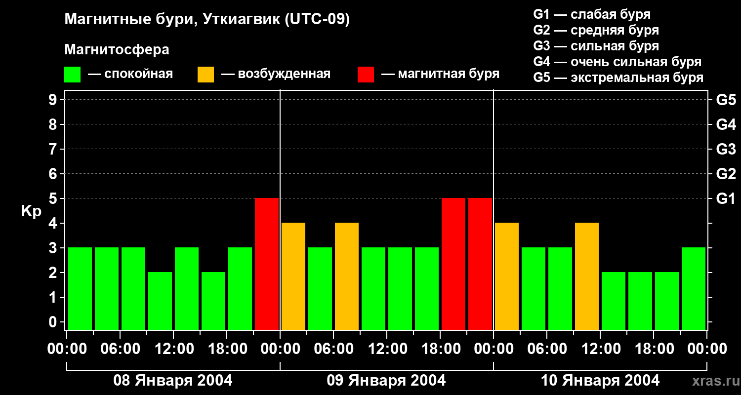 Магнитные бури в Уткиагвике 10 января 2004 года