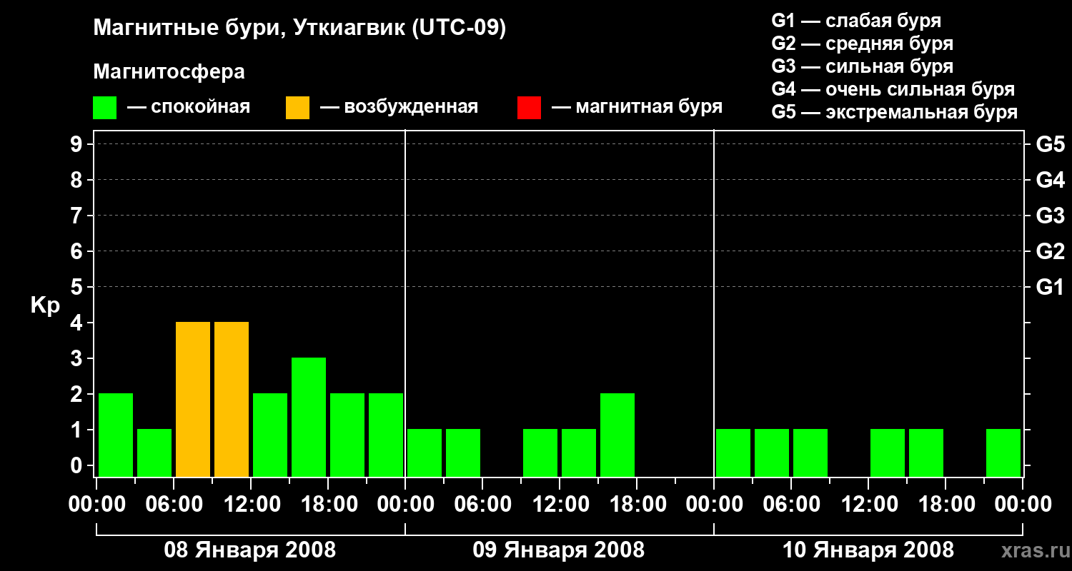 Магнитные бури в Уткиагвике — 10 января 2008 года