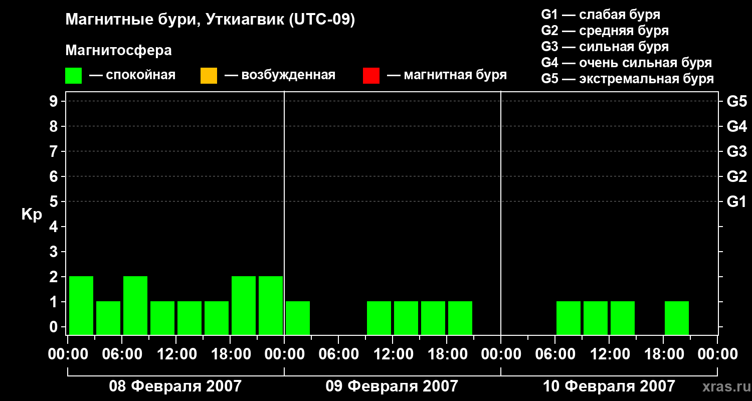 Магнитные бури в Уткиагвике — 10 февраля 2007 года