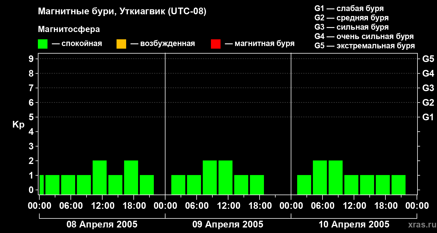 Магнитные бури в Уткиагвике 10 апреля 2005 года