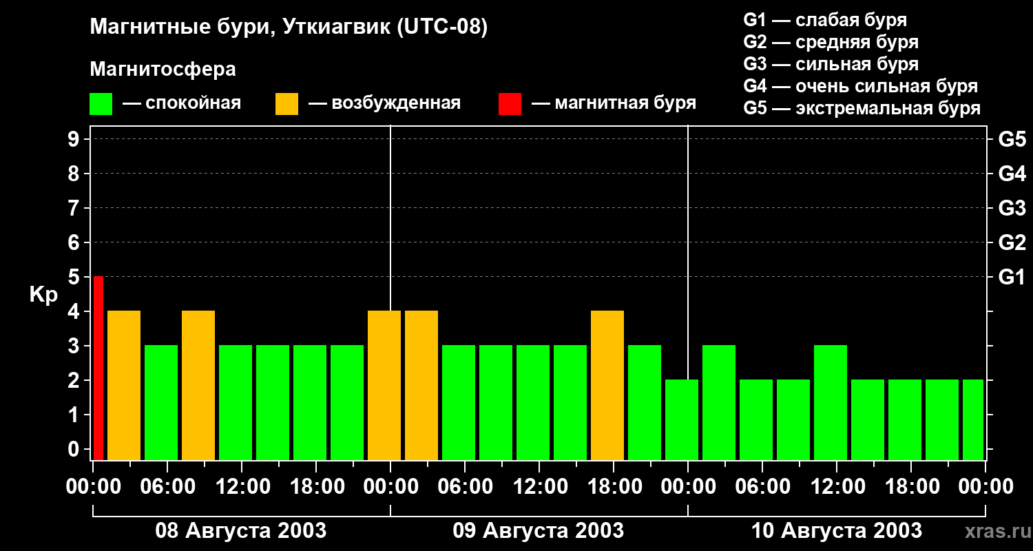 Магнитные бури в Уткиагвике — 10 августа 2003 года