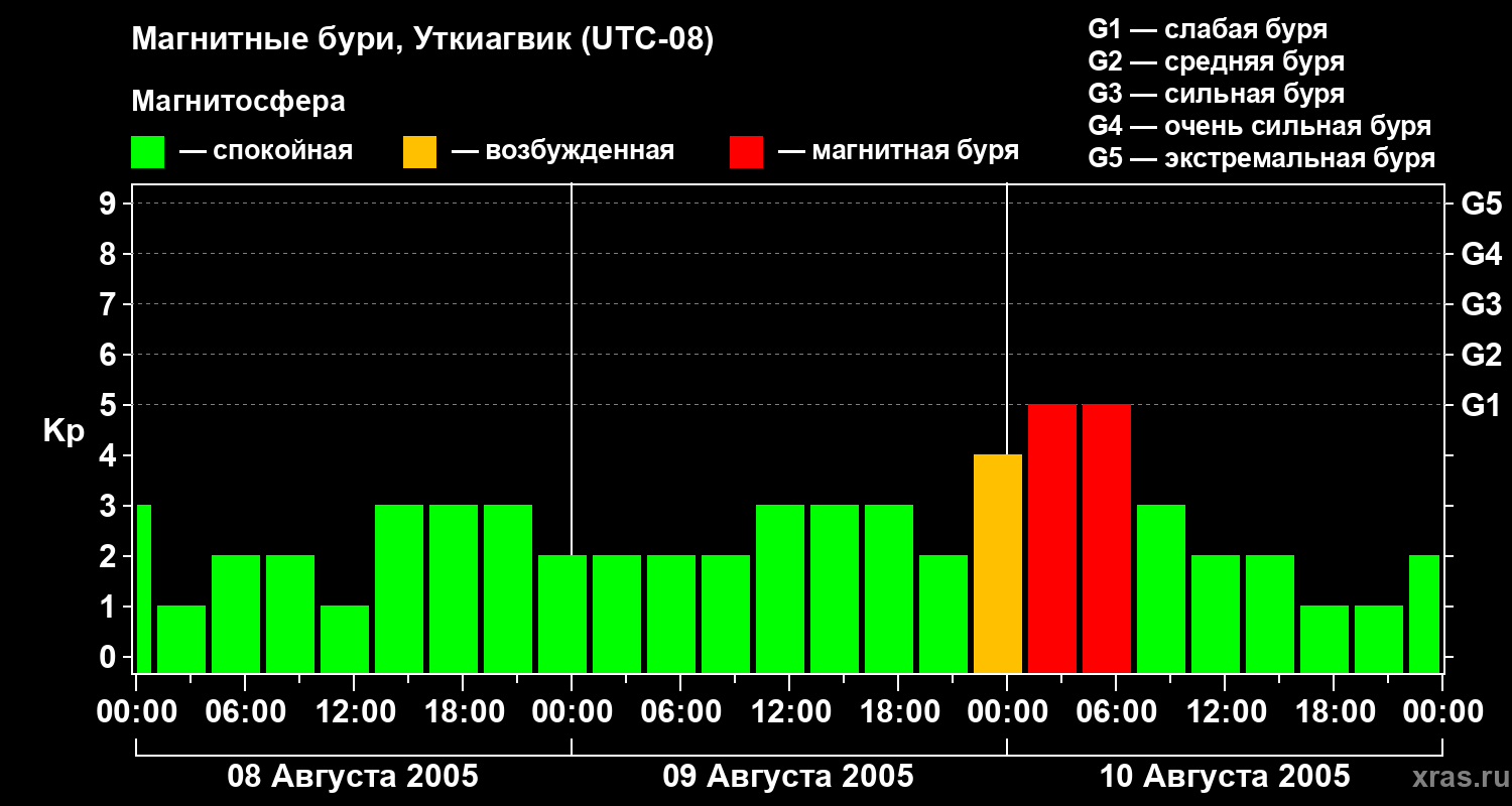Магнитные бури в Уткиагвике — 10 августа 2005 года