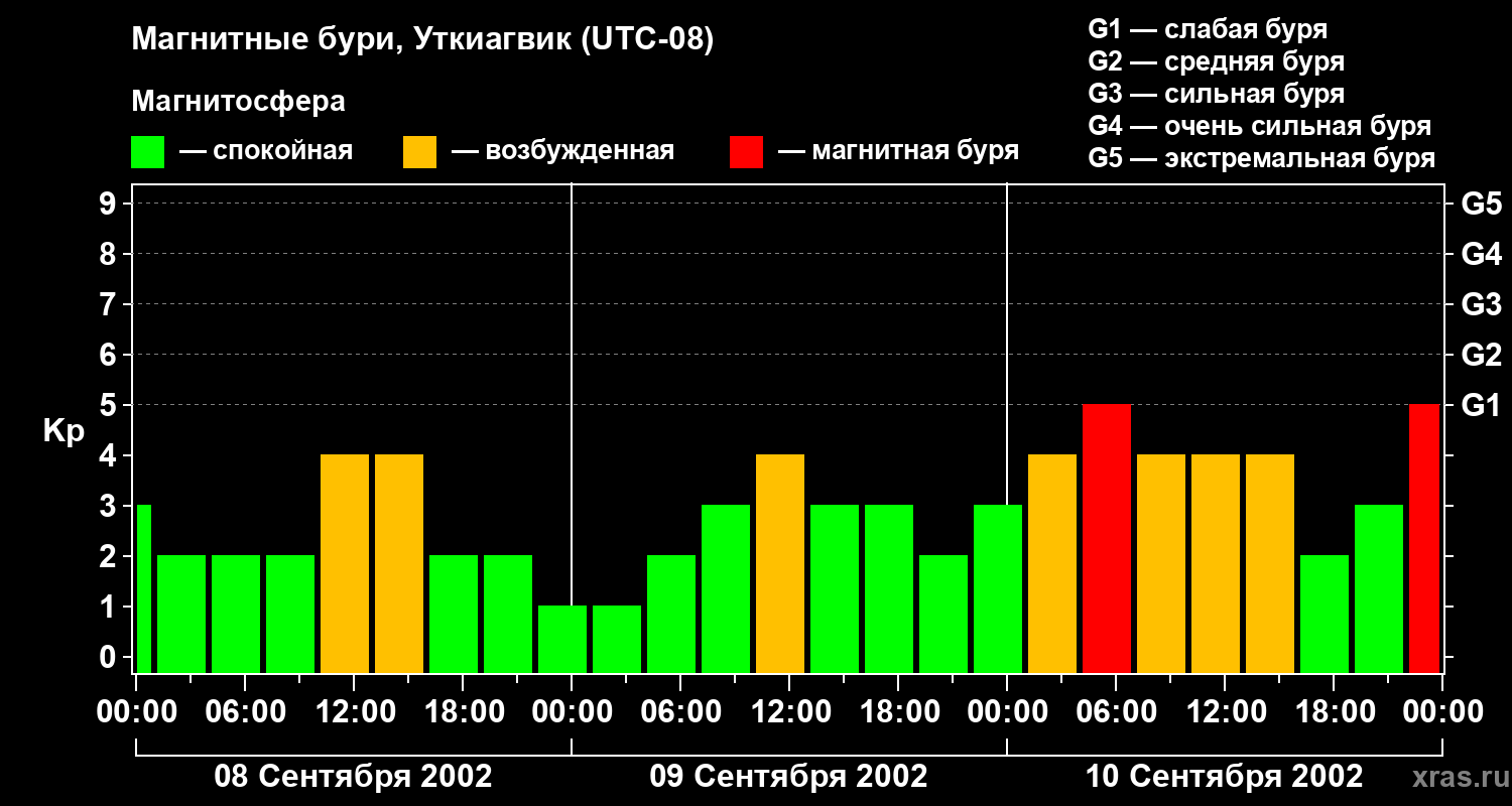 Магнитные бури в Уткиагвике — 10 сентября 2002 года