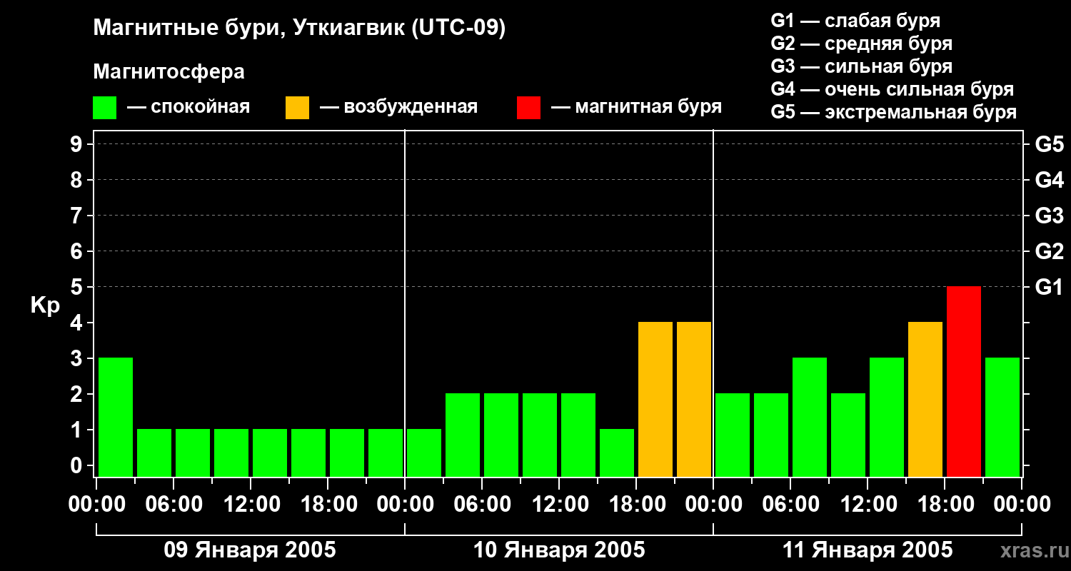 Магнитные бури в Уткиагвике — 11 января 2005 года