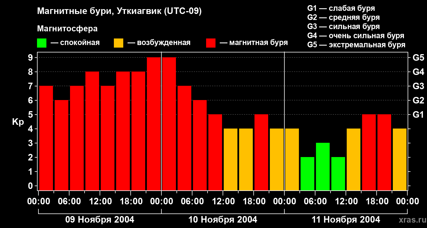 Магнитные бури в Уткиагвике — 11 ноября 2004 года
