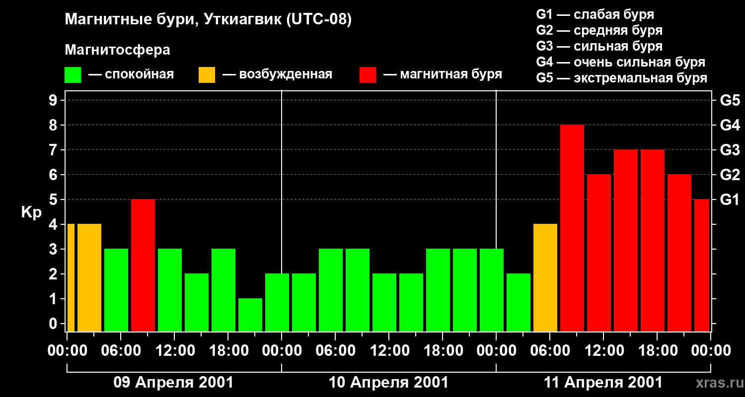 Магнитные бури в Уткиагвике — 11 апреля 2001 года