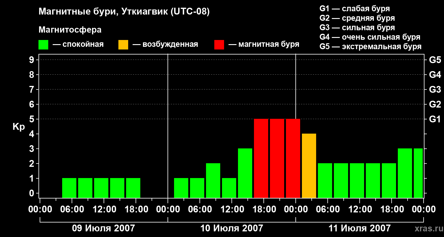 Магнитные бури в Уткиагвике 11 июля 2007 года
