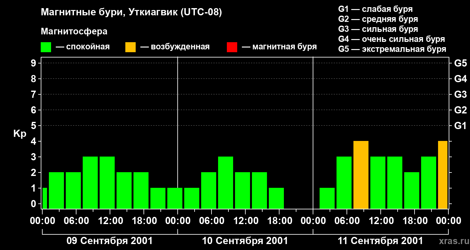 Магнитные бури в Уткиагвике 11 сентября 2001 года