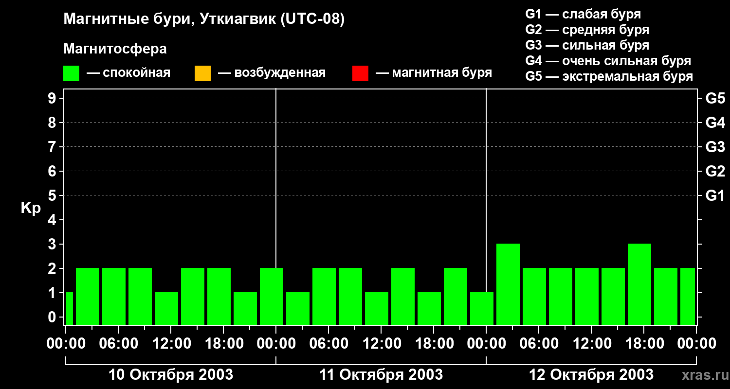 Магнитные бури в Уткиагвике — 12 октября 2003 года