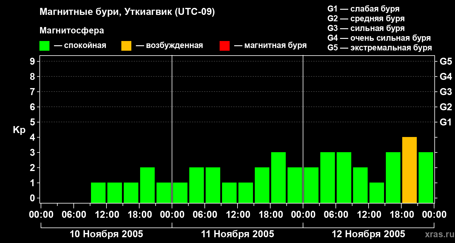 Магнитные бури в Уткиагвике — 12 ноября 2005 года