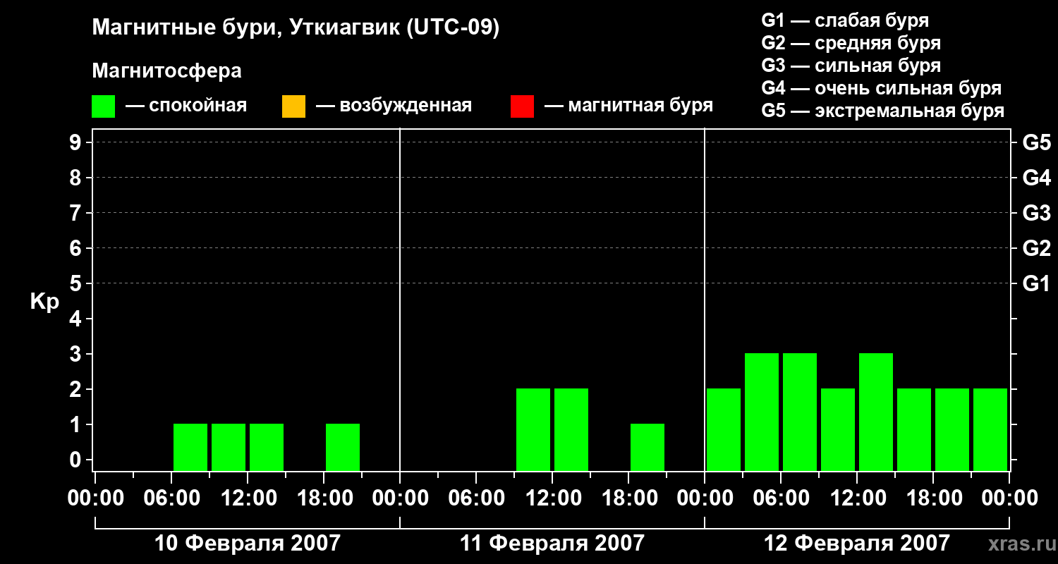 Магнитные бури в Уткиагвике — 12 февраля 2007 года