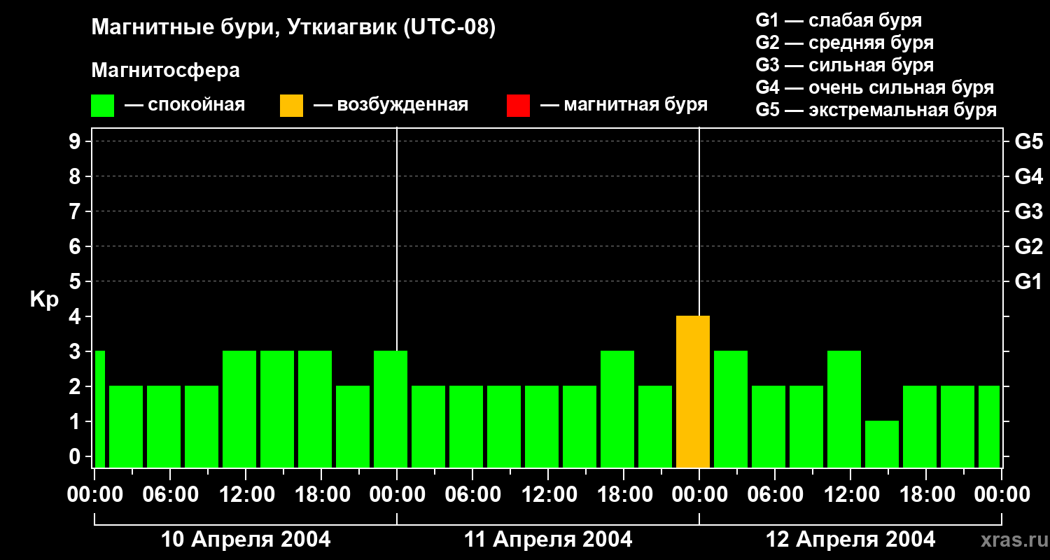 Магнитные бури в Уткиагвике — 12 апреля 2004 года