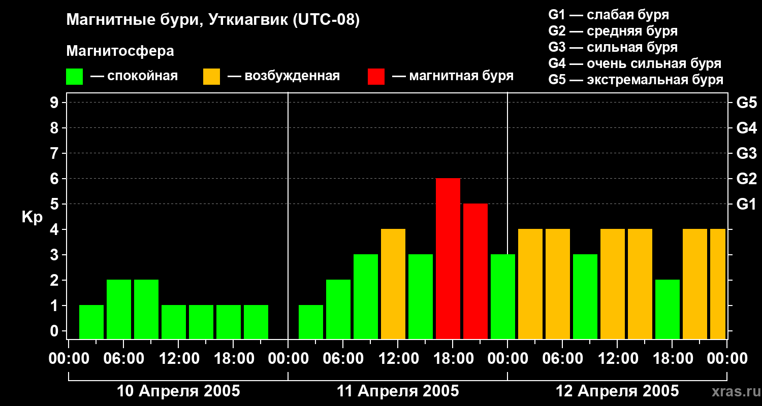 Магнитные бури в Уткиагвике 12 апреля 2005 года