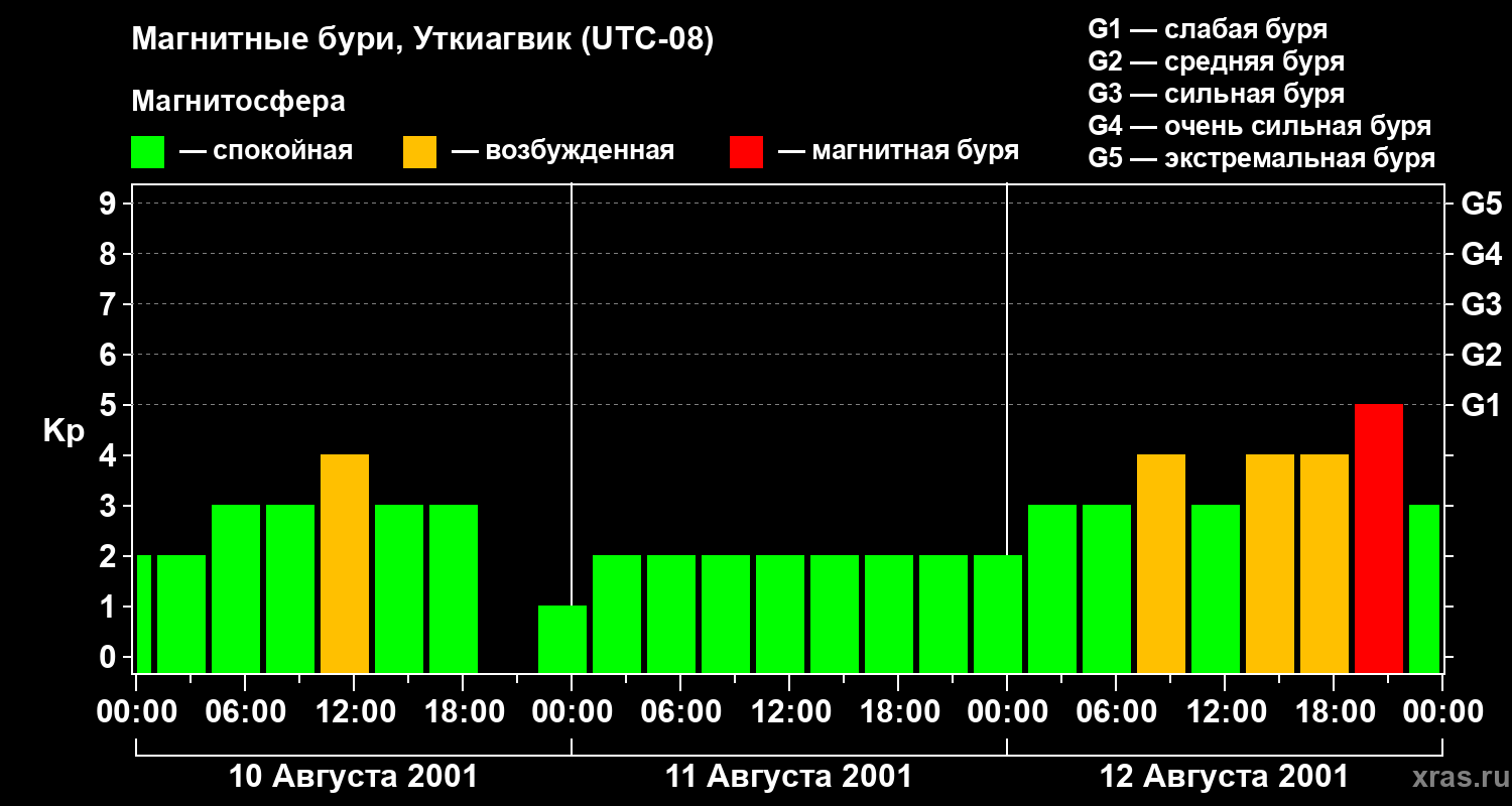 Магнитные бури в Уткиагвике 12 августа 2001 года