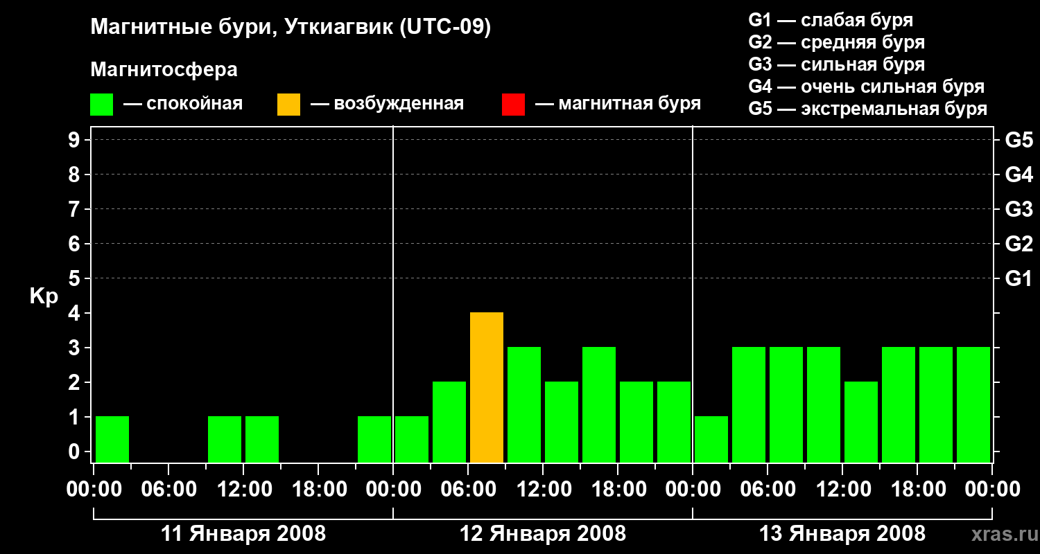Магнитные бури в Уткиагвике — 13 января 2008 года