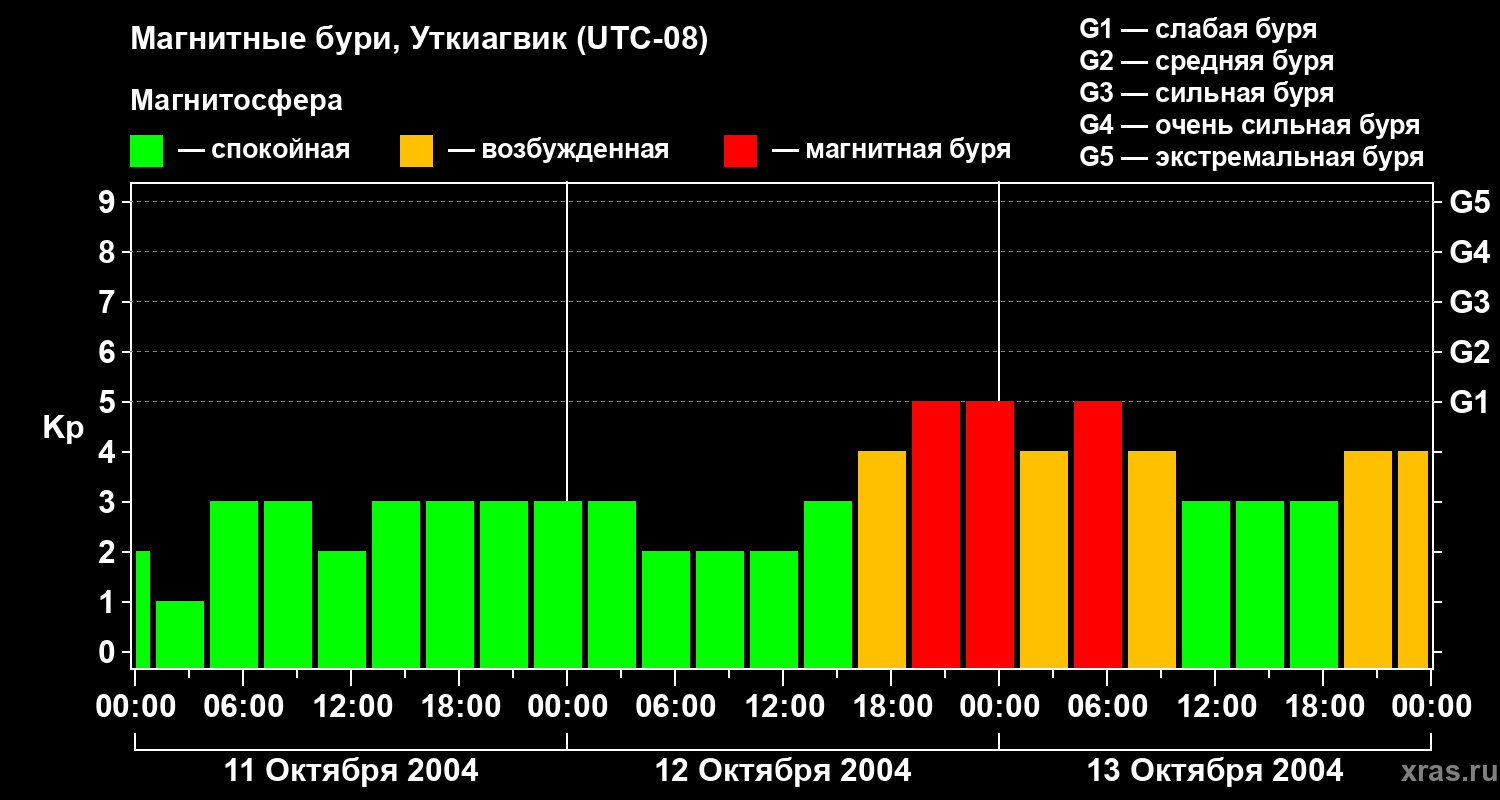 Магнитные бури в Уткиагвике — 13 октября 2004 года