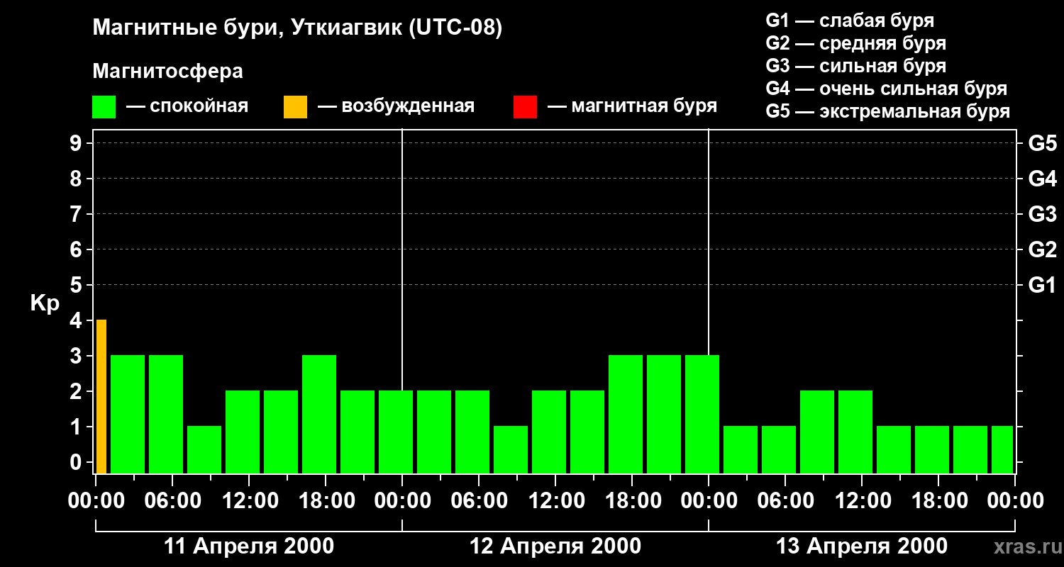 Магнитные бури в Уткиагвике — 13 апреля 2000 года