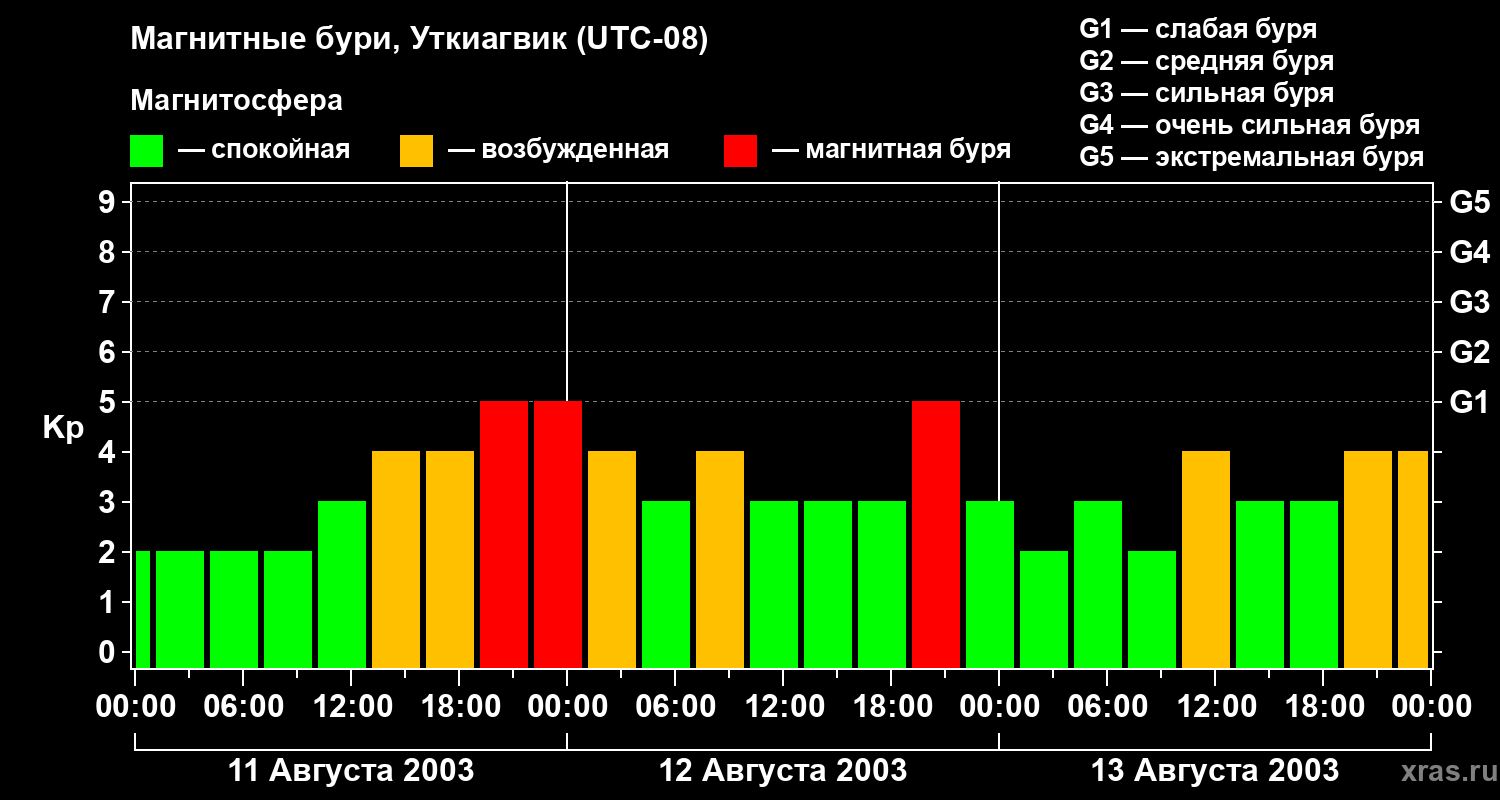 Магнитные бури в Уткиагвике — 13 августа 2003 года
