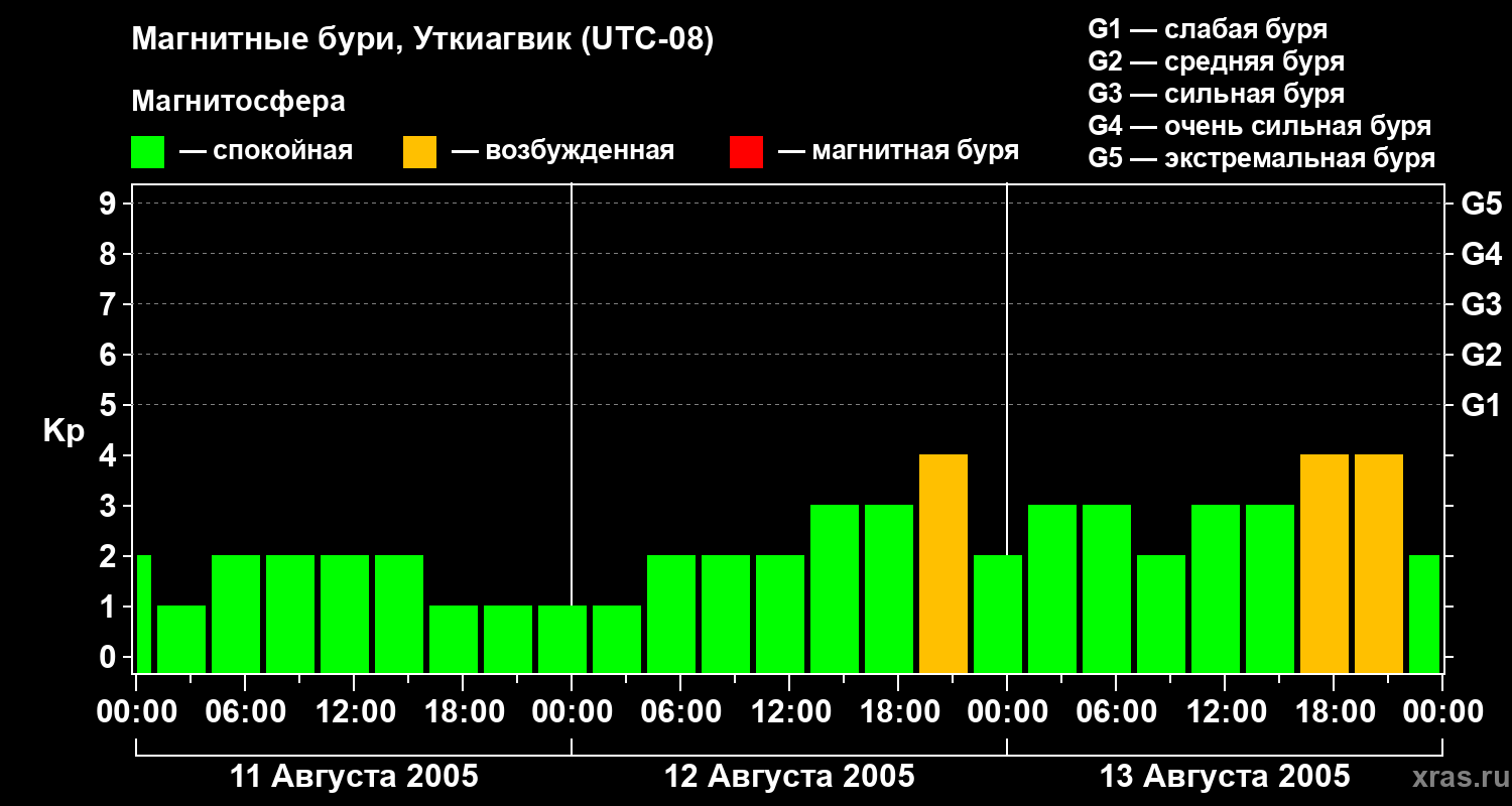 Магнитные бури в Уткиагвике — 13 августа 2005 года