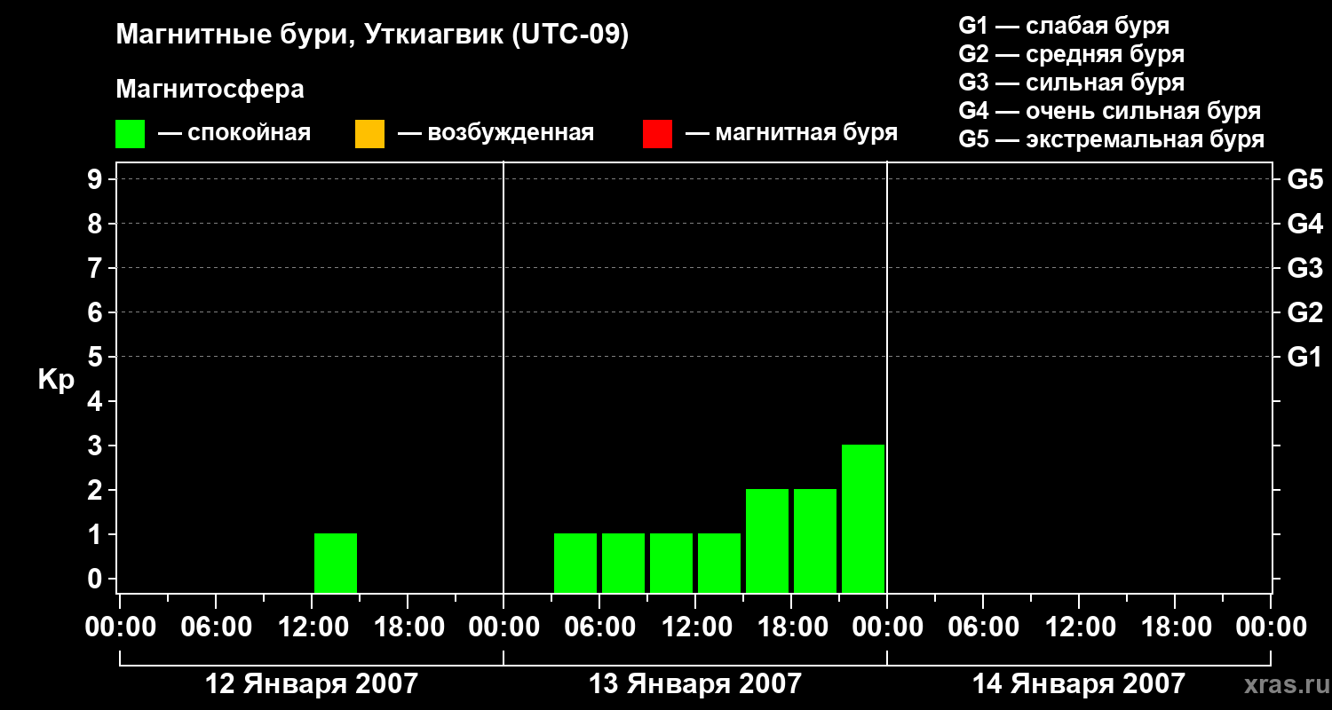 Магнитные бури в Уткиагвике — 14 января 2007 года