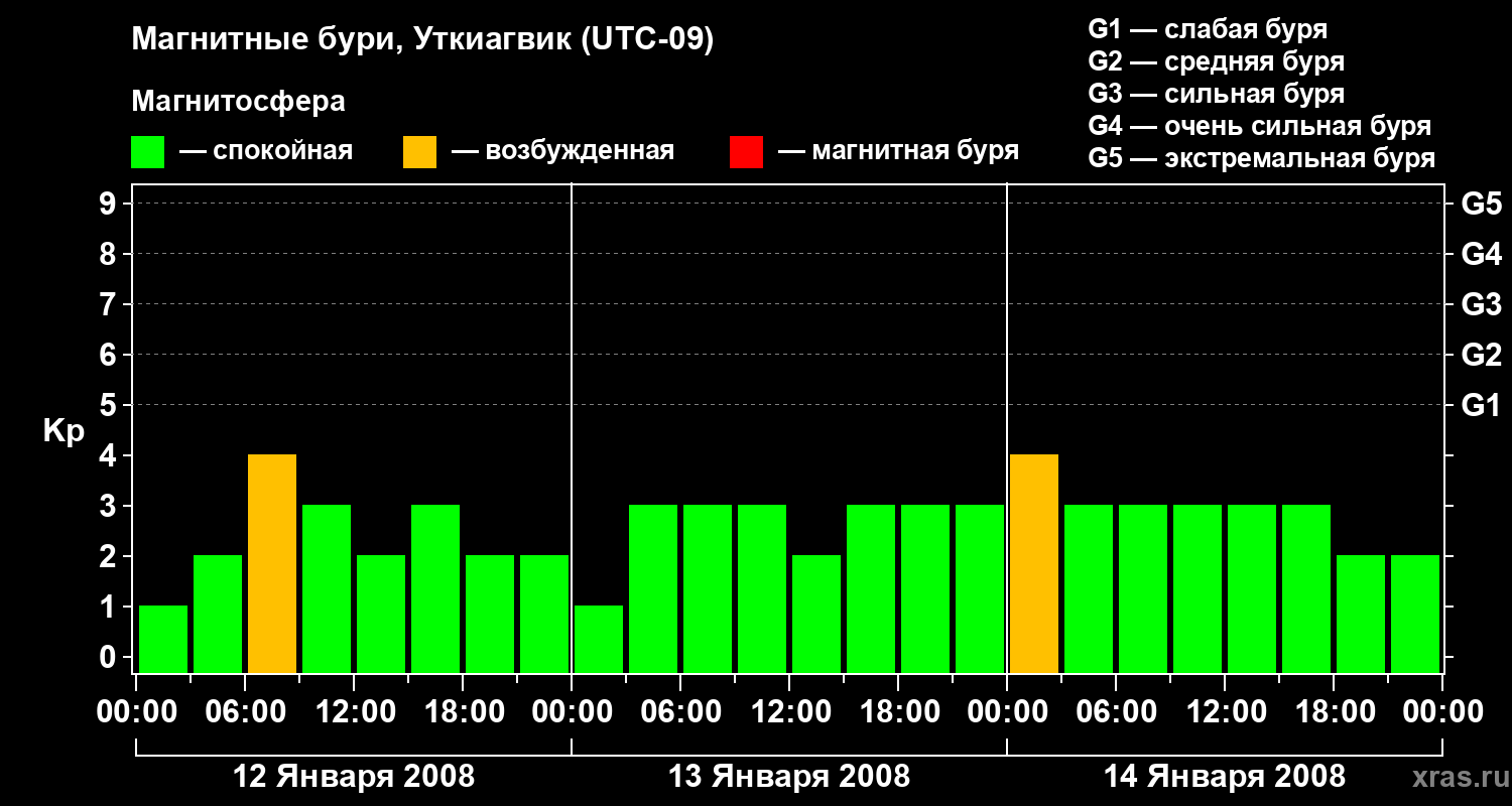 Магнитные бури в Уткиагвике — 14 января 2008 года