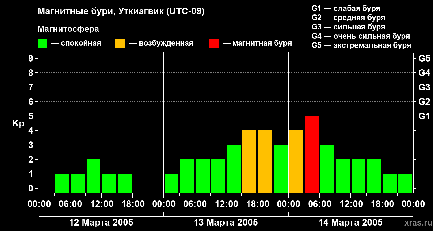 Магнитные бури в Уткиагвике 14 марта 2005 года