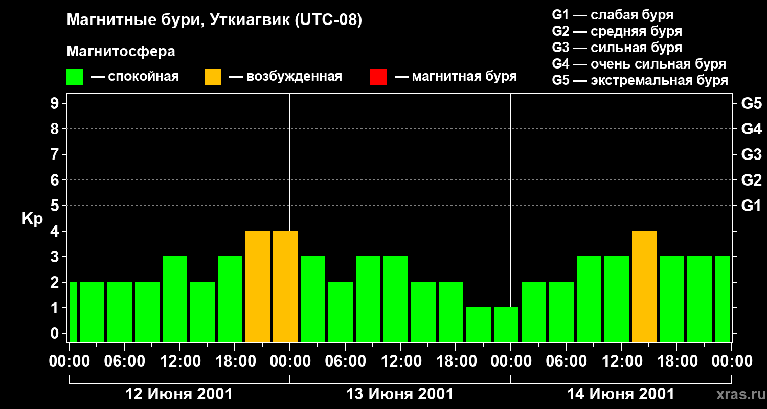 Магнитные бури в Уткиагвике 14 июня 2001 года
