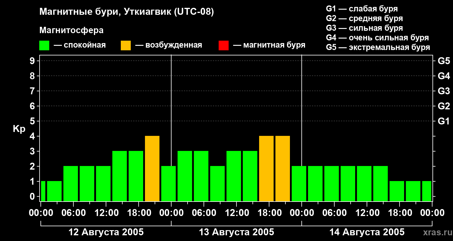 Магнитные бури в Уткиагвике — 14 августа 2005 года