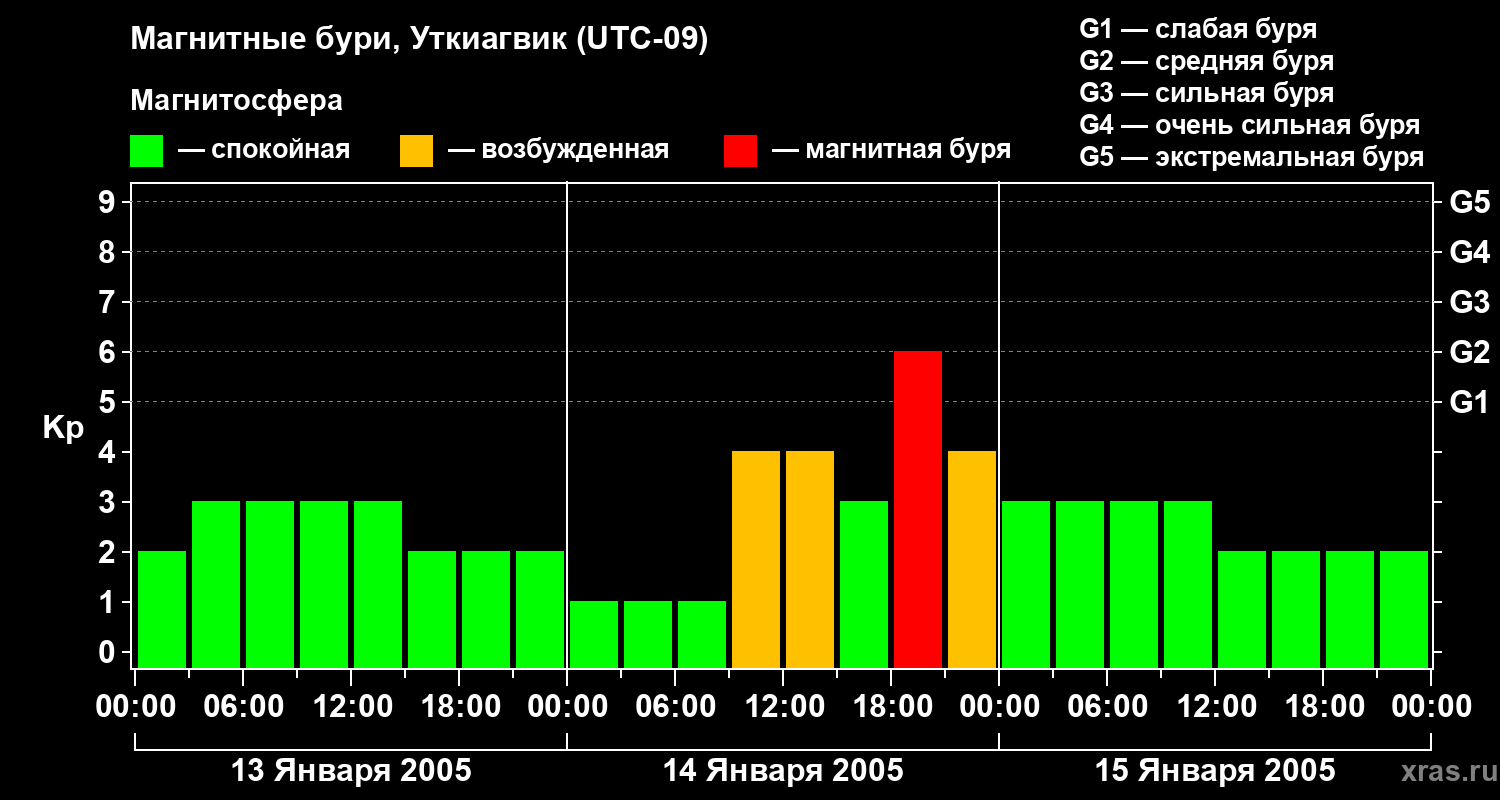 Магнитные бури в Уткиагвике — 15 января 2005 года