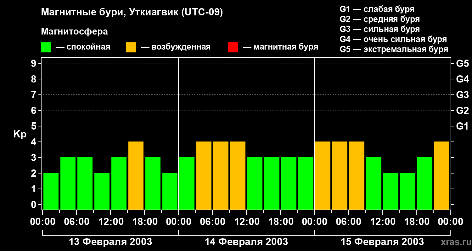 Магнитные бури в Уткиагвике — 15 февраля 2003 года