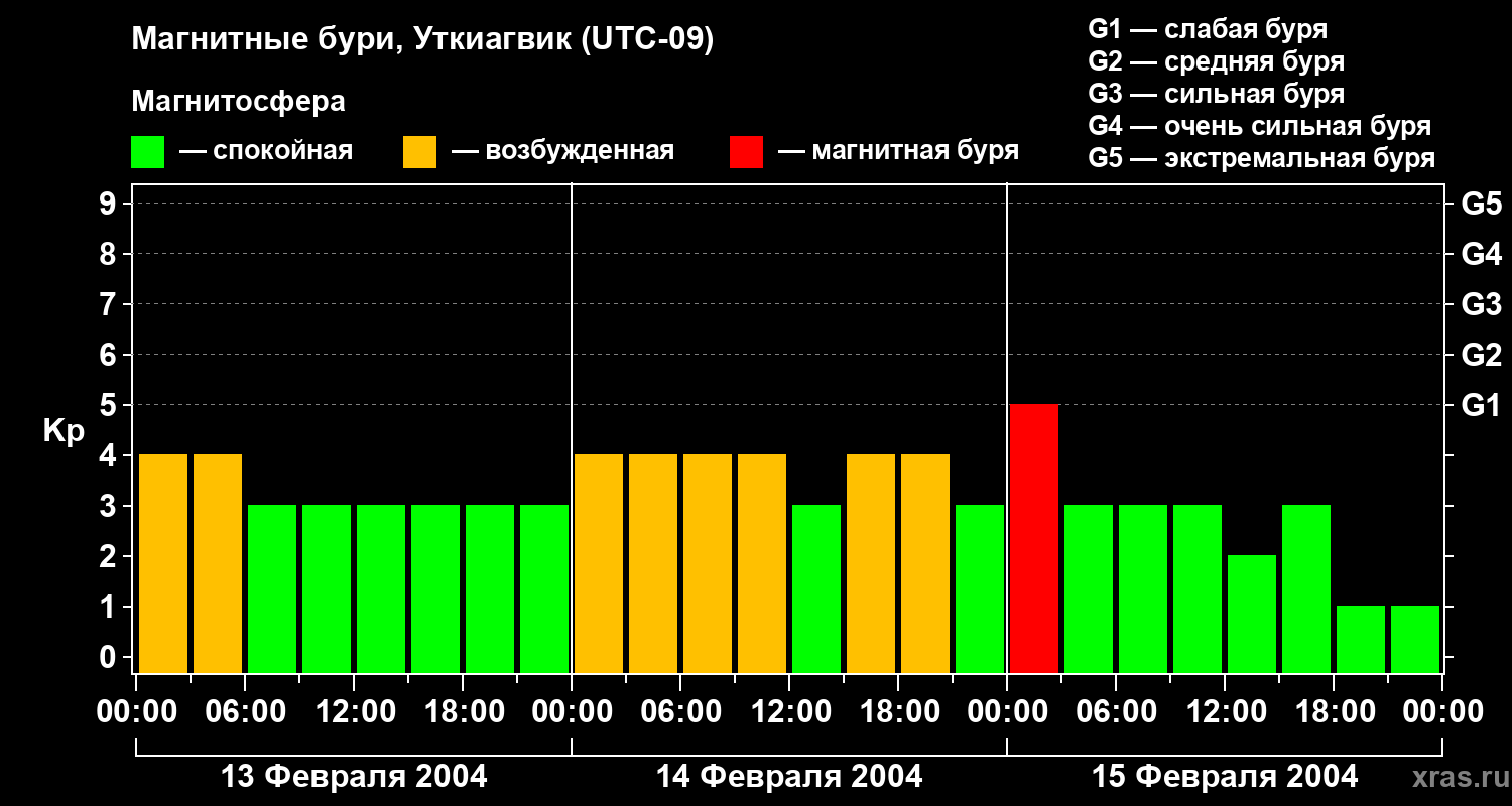Магнитные бури в Уткиагвике — 15 февраля 2004 года