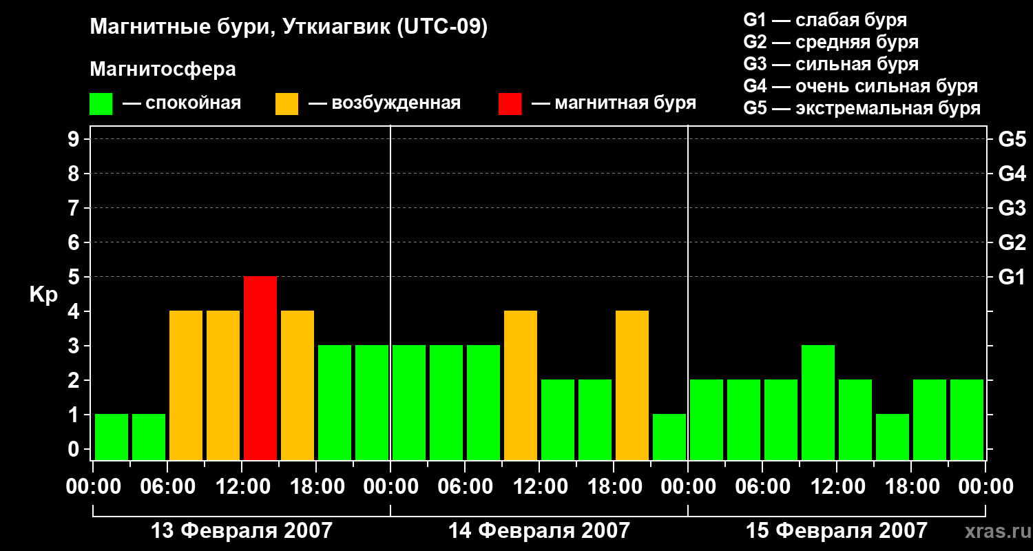 Магнитные бури в Уткиагвике — 15 февраля 2007 года