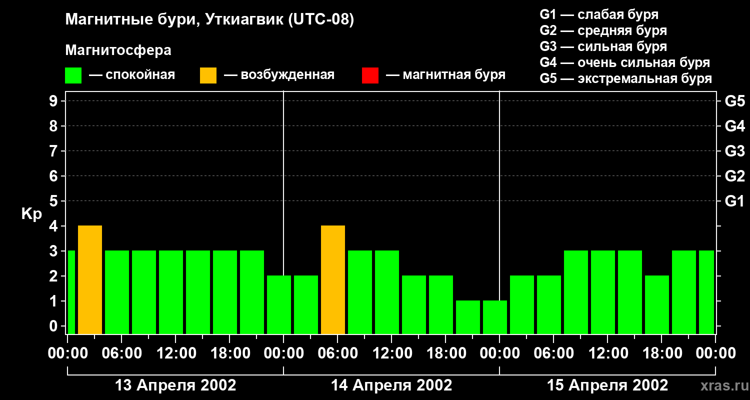 Магнитные бури в Уткиагвике — 15 апреля 2002 года