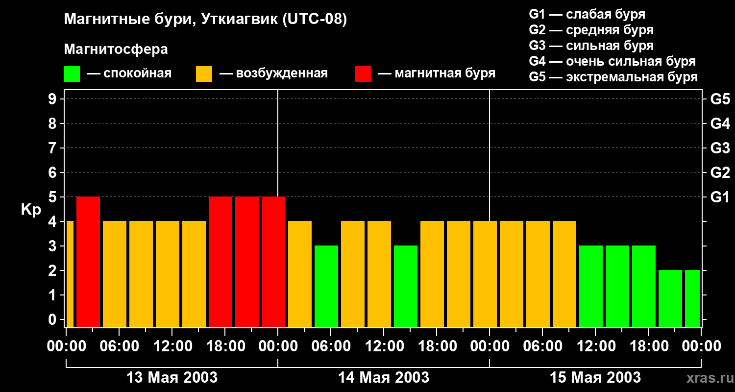 Магнитные бури в Уткиагвике — 15 мая 2003 года