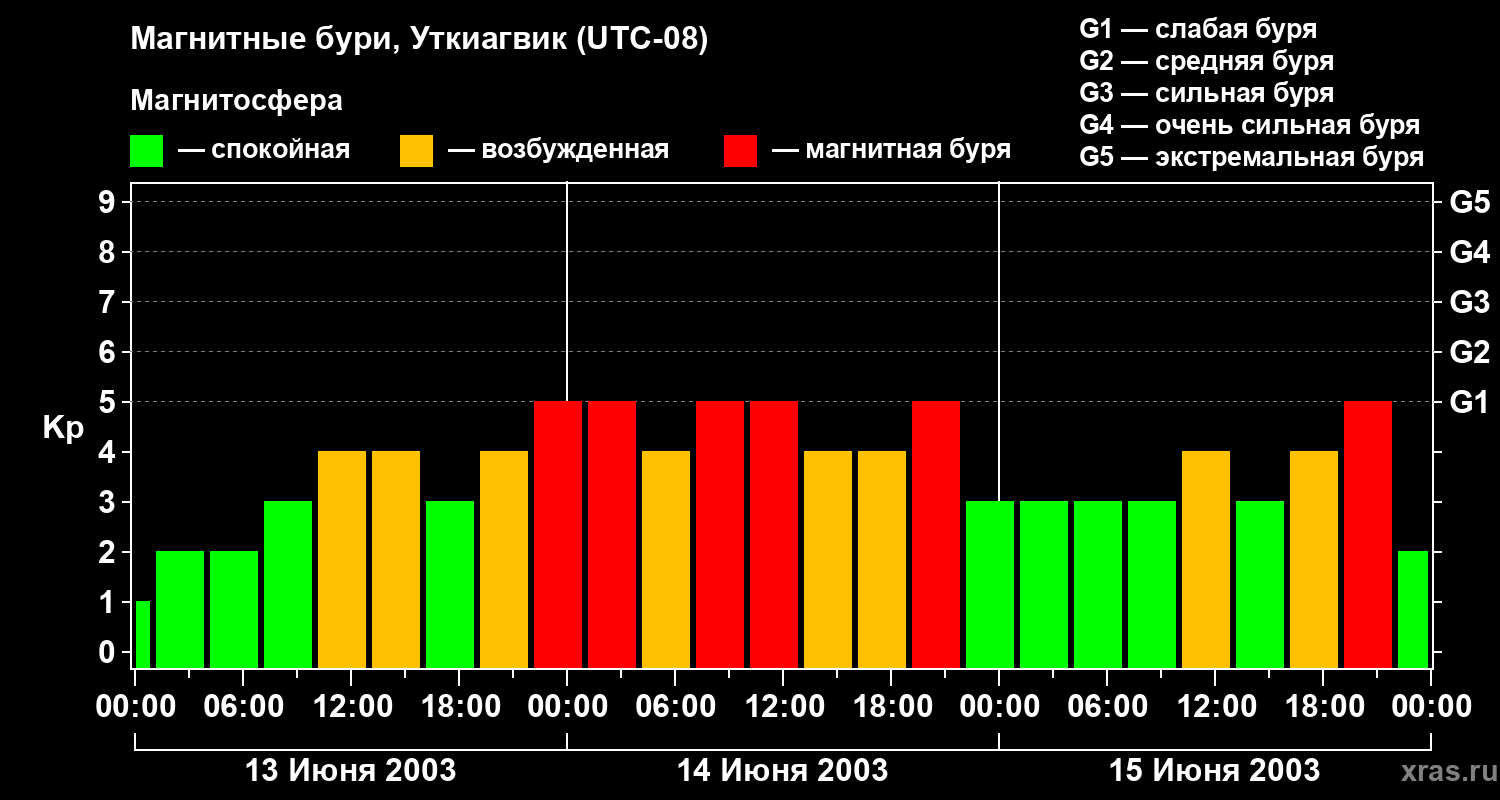 Магнитные бури в Уткиагвике — 15 июня 2003 года