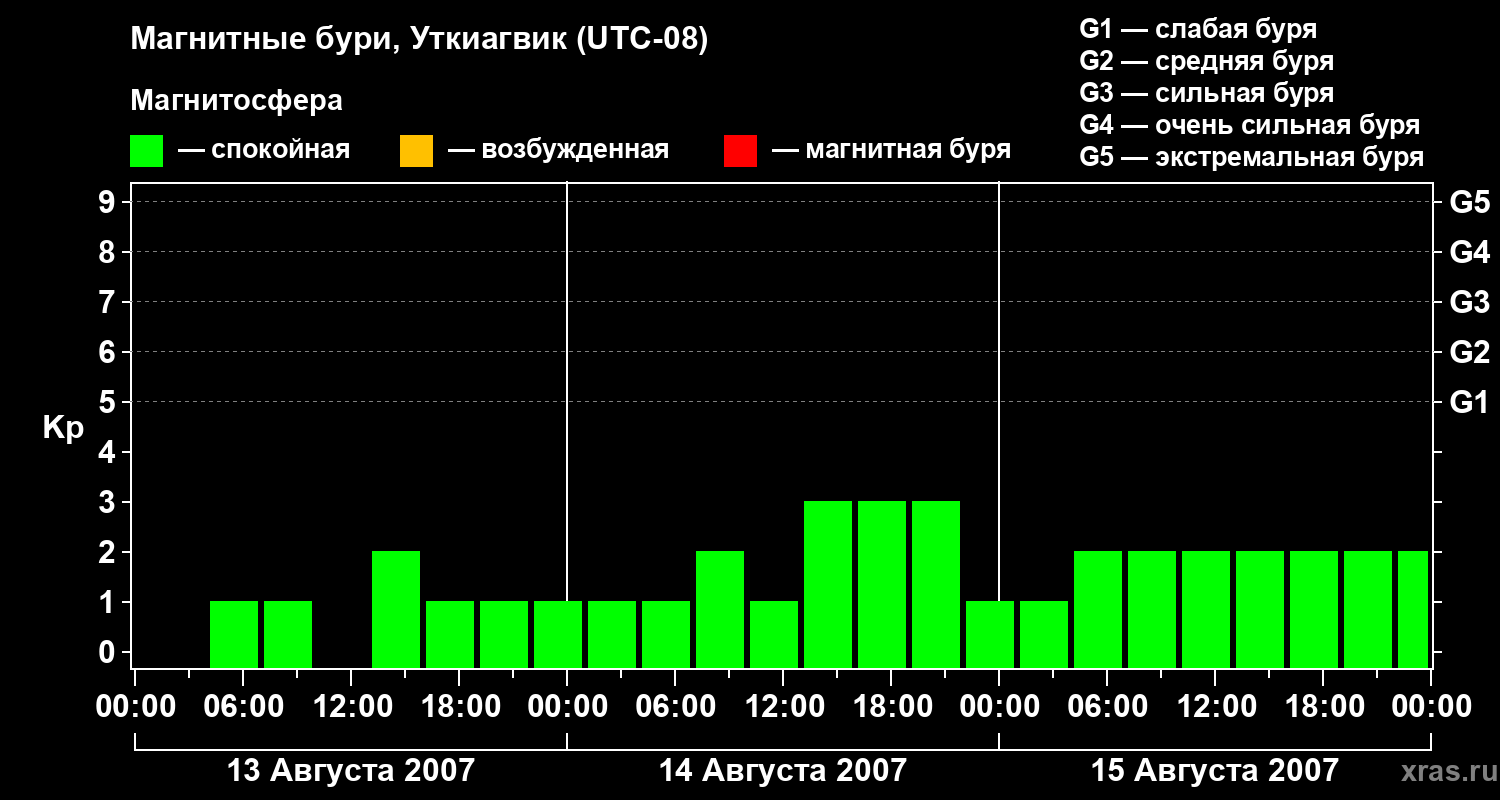 Магнитные бури в Уткиагвике — 15 августа 2007 года