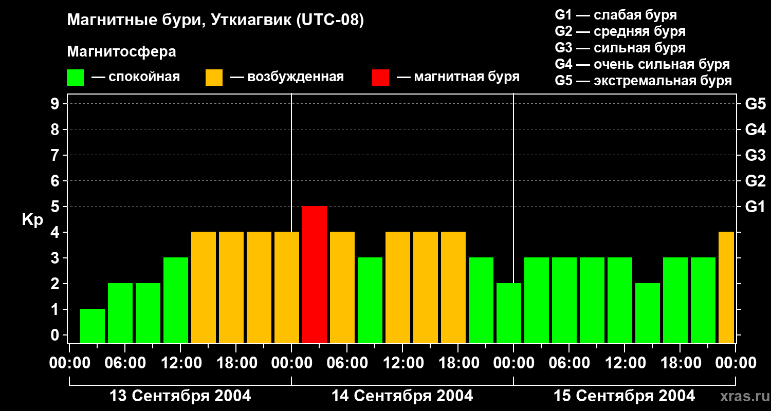 Магнитные бури в Уткиагвике — 15 сентября 2004 года