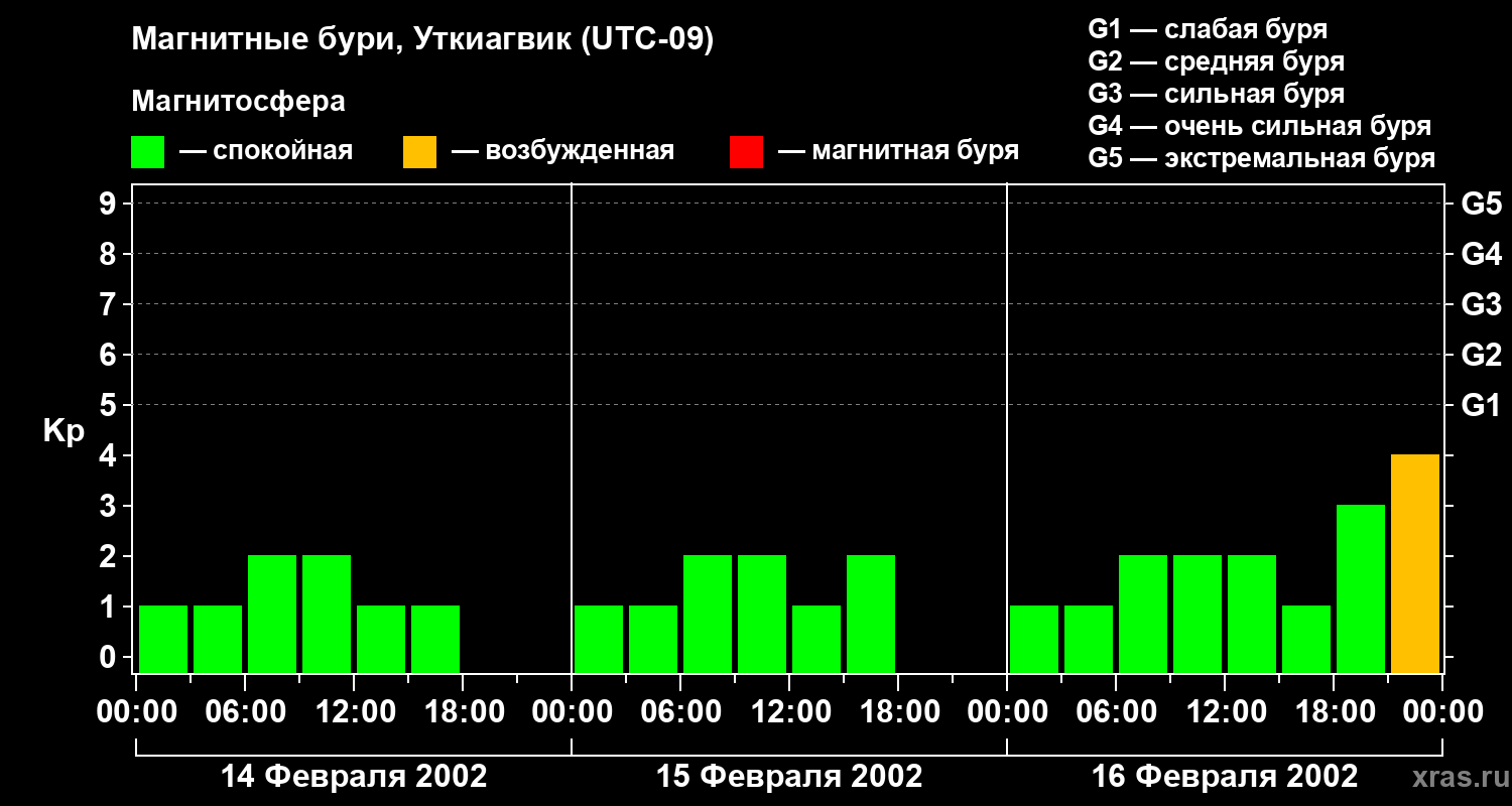 Магнитные бури в Уткиагвике — 16 февраля 2002 года