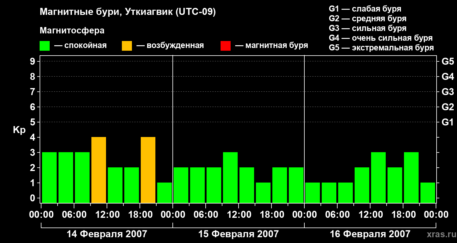 Магнитные бури в Уткиагвике — 16 февраля 2007 года