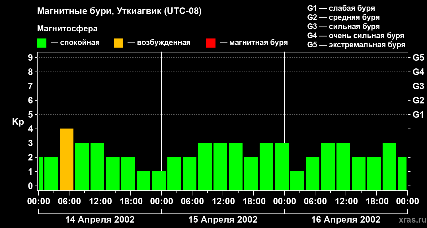 Магнитные бури в Уткиагвике — 16 апреля 2002 года
