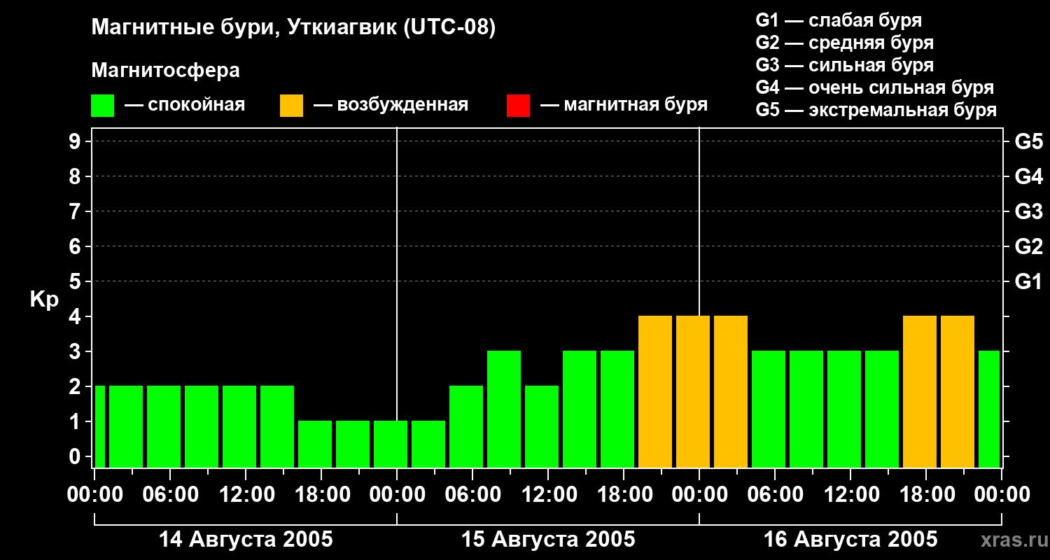 Магнитные бури в Уткиагвике — 16 августа 2005 года