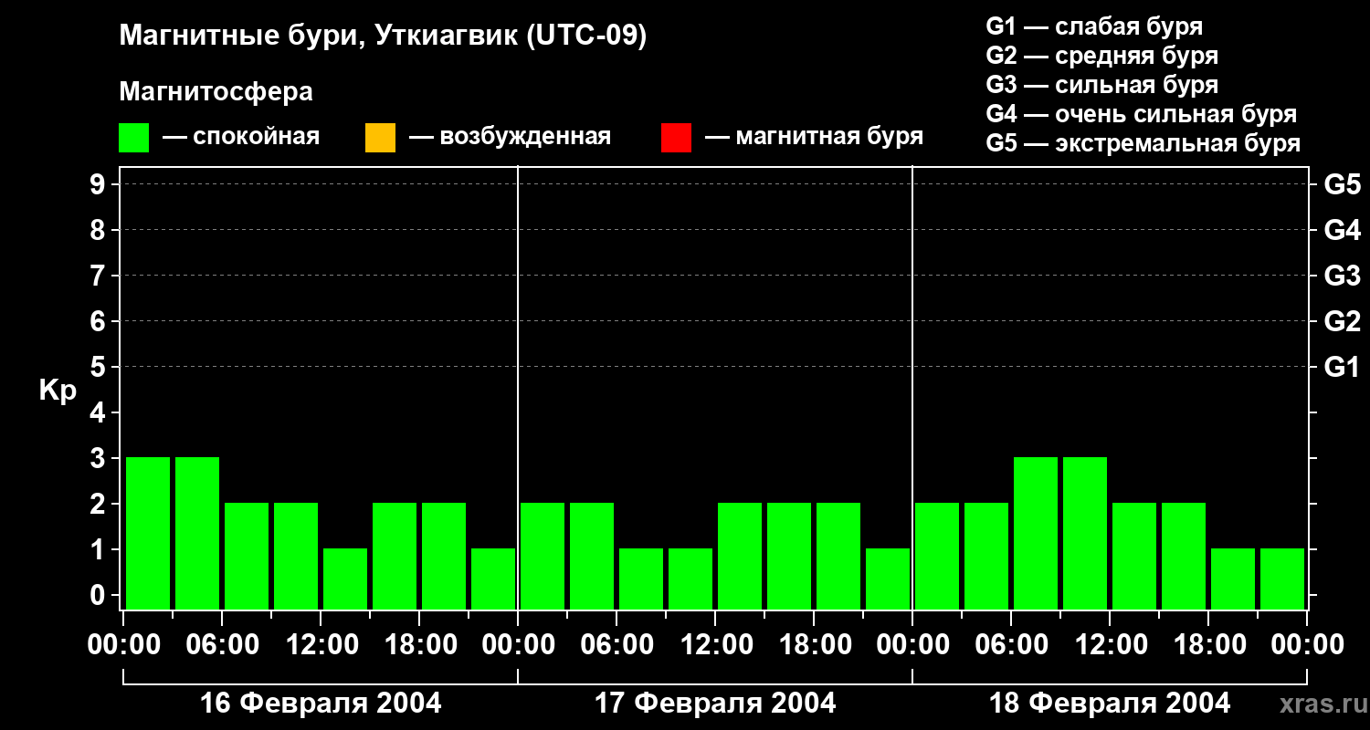 Магнитные бури в Уткиагвике — 18 февраля 2004 года