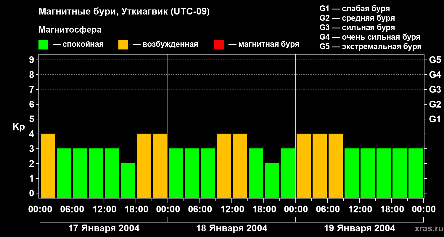 Магнитные бури в Уткиагвике — 19 января 2004 года