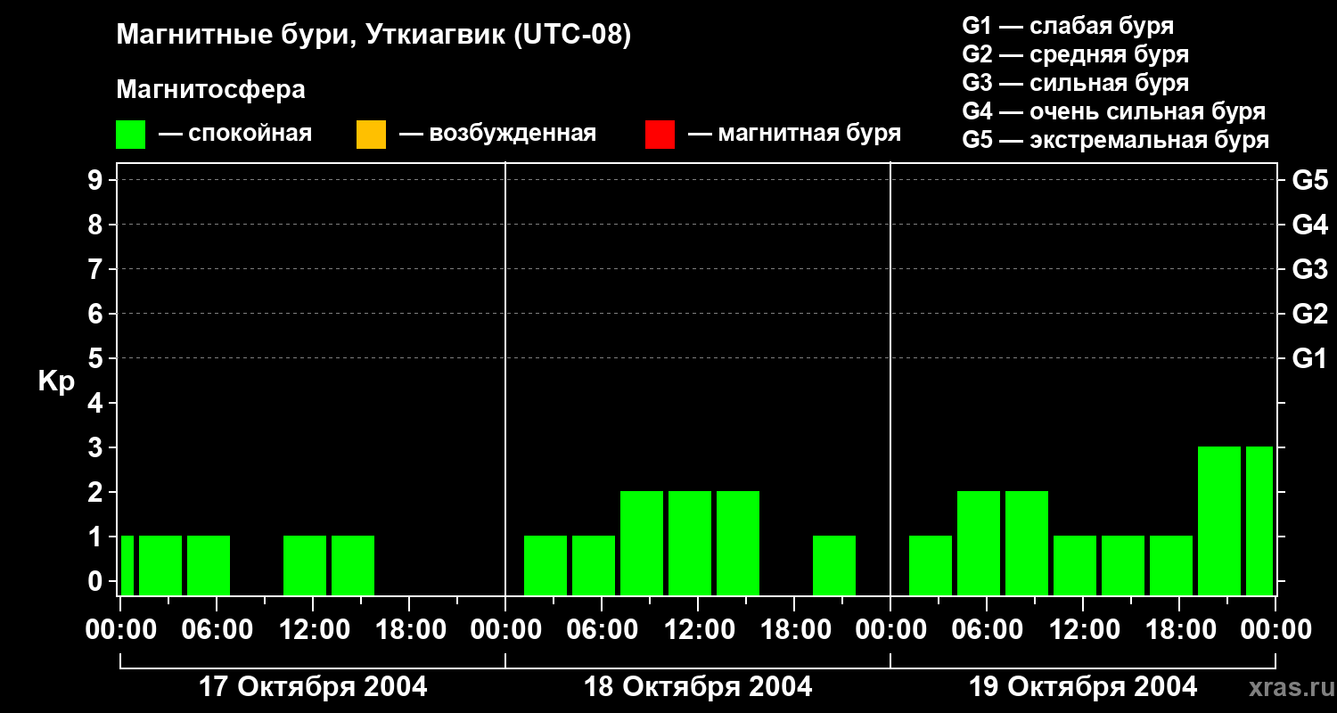 Магнитные бури в Уткиагвике — 19 октября 2004 года