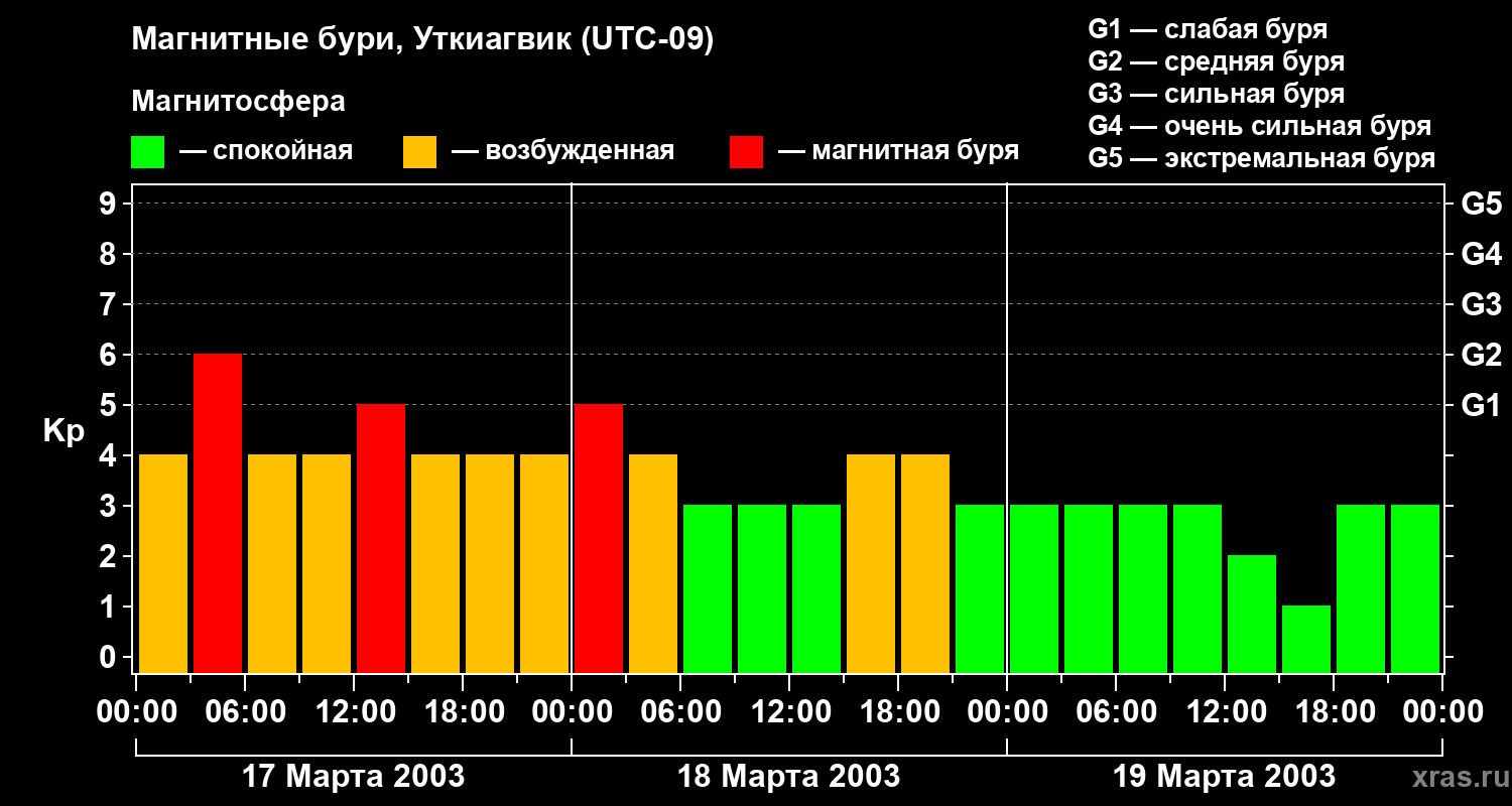 Магнитные бури в Уткиагвике 19 марта 2003 года