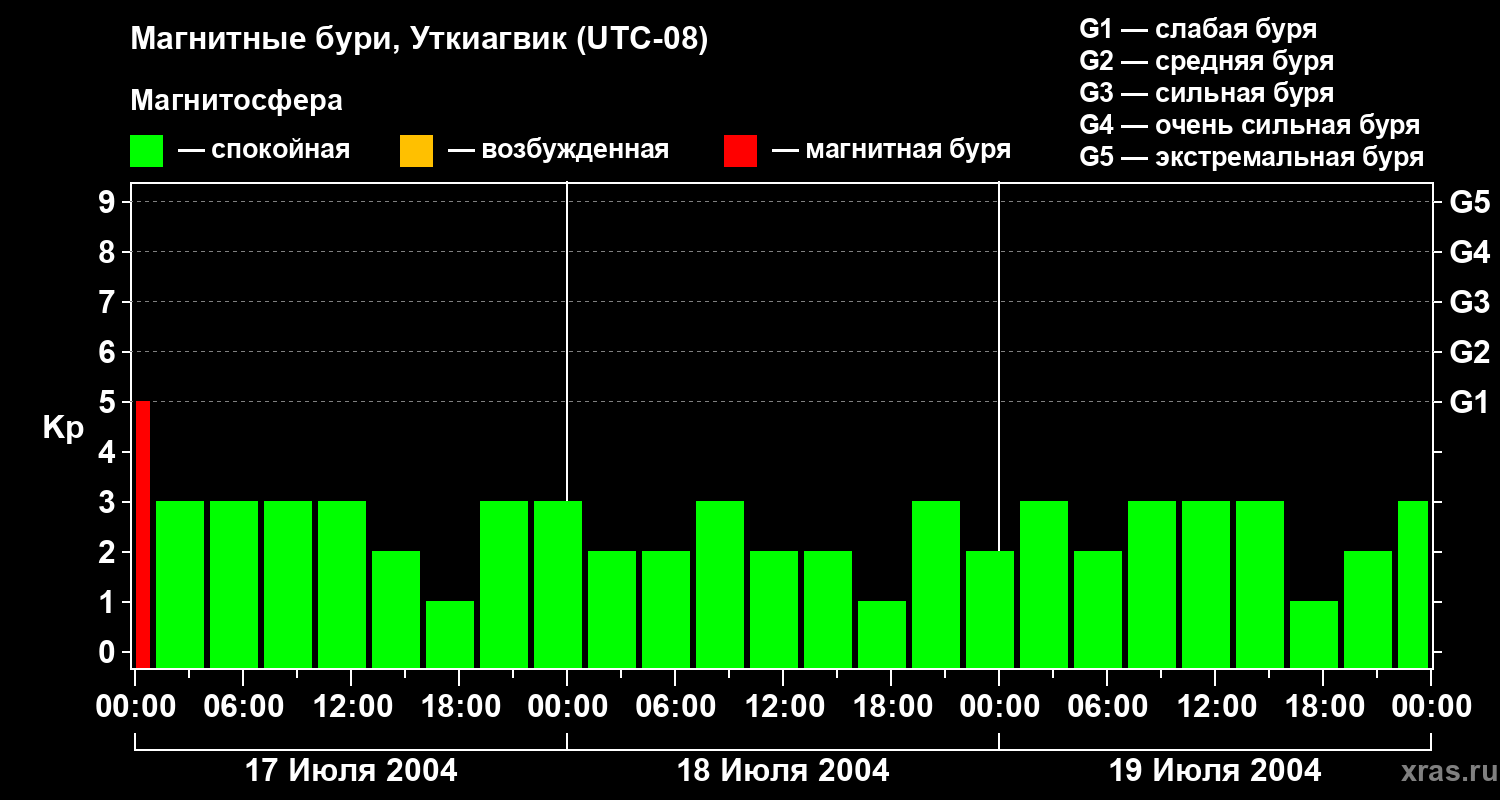 Магнитные бури в Уткиагвике — 19 июля 2004 года