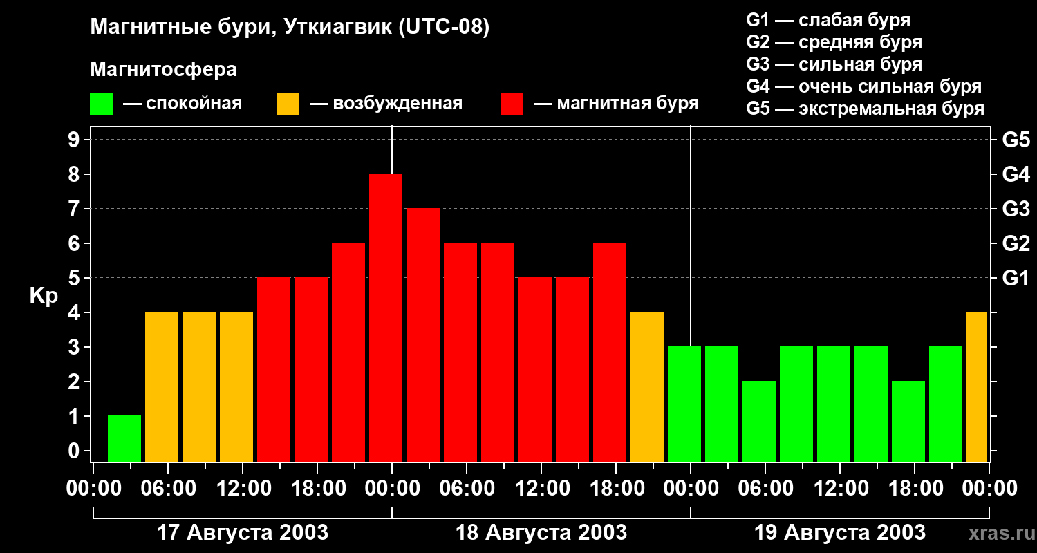 Магнитные бури в Уткиагвике в августе 2003 года