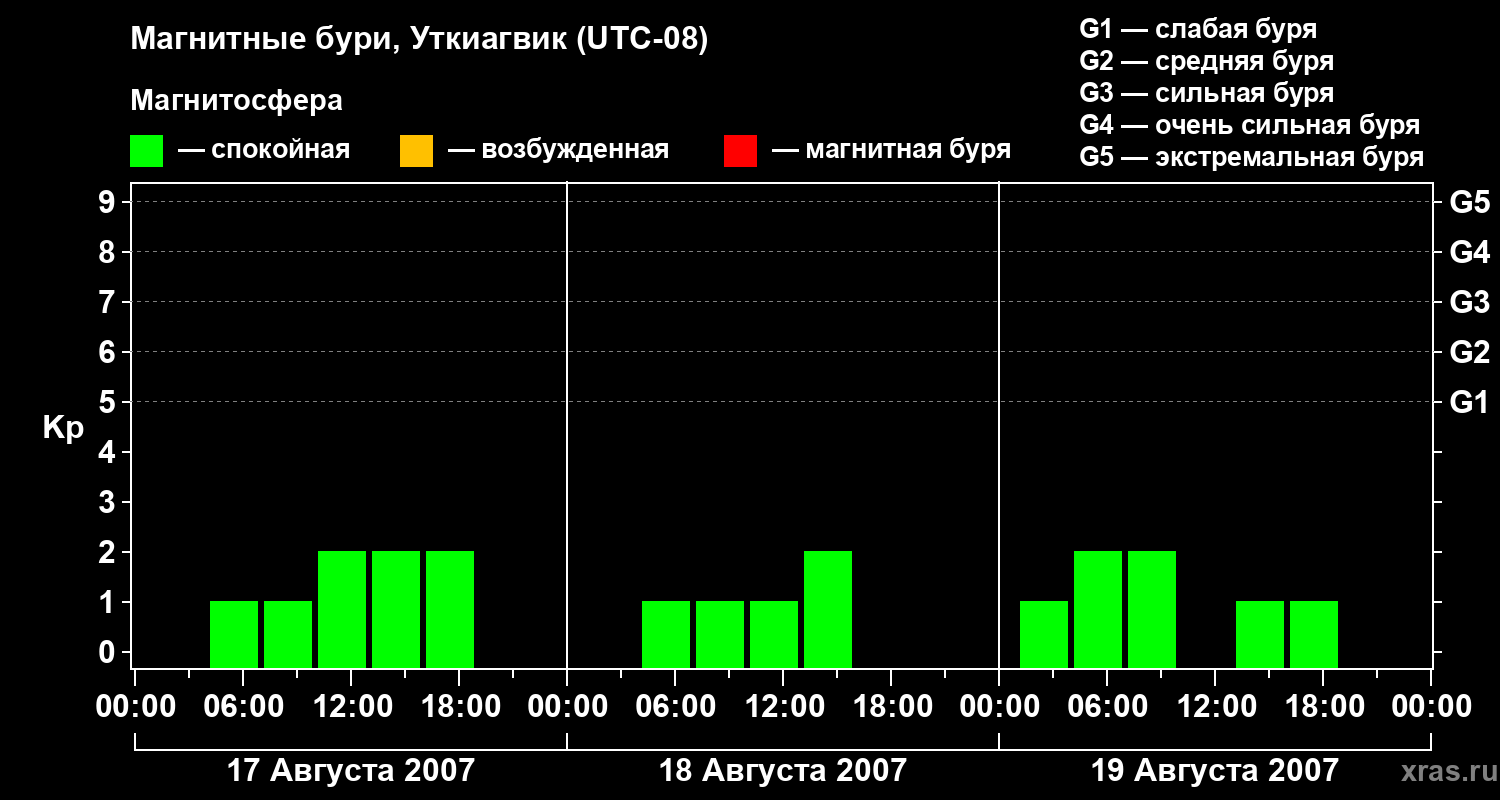 Магнитные бури в Уткиагвике — 19 августа 2007 года