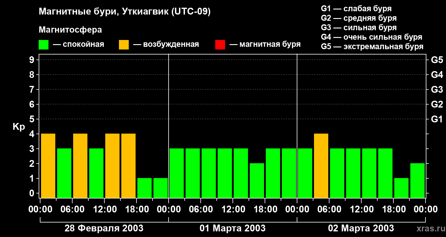 Магнитные бури в Уткиагвике — 2 марта 2003 года