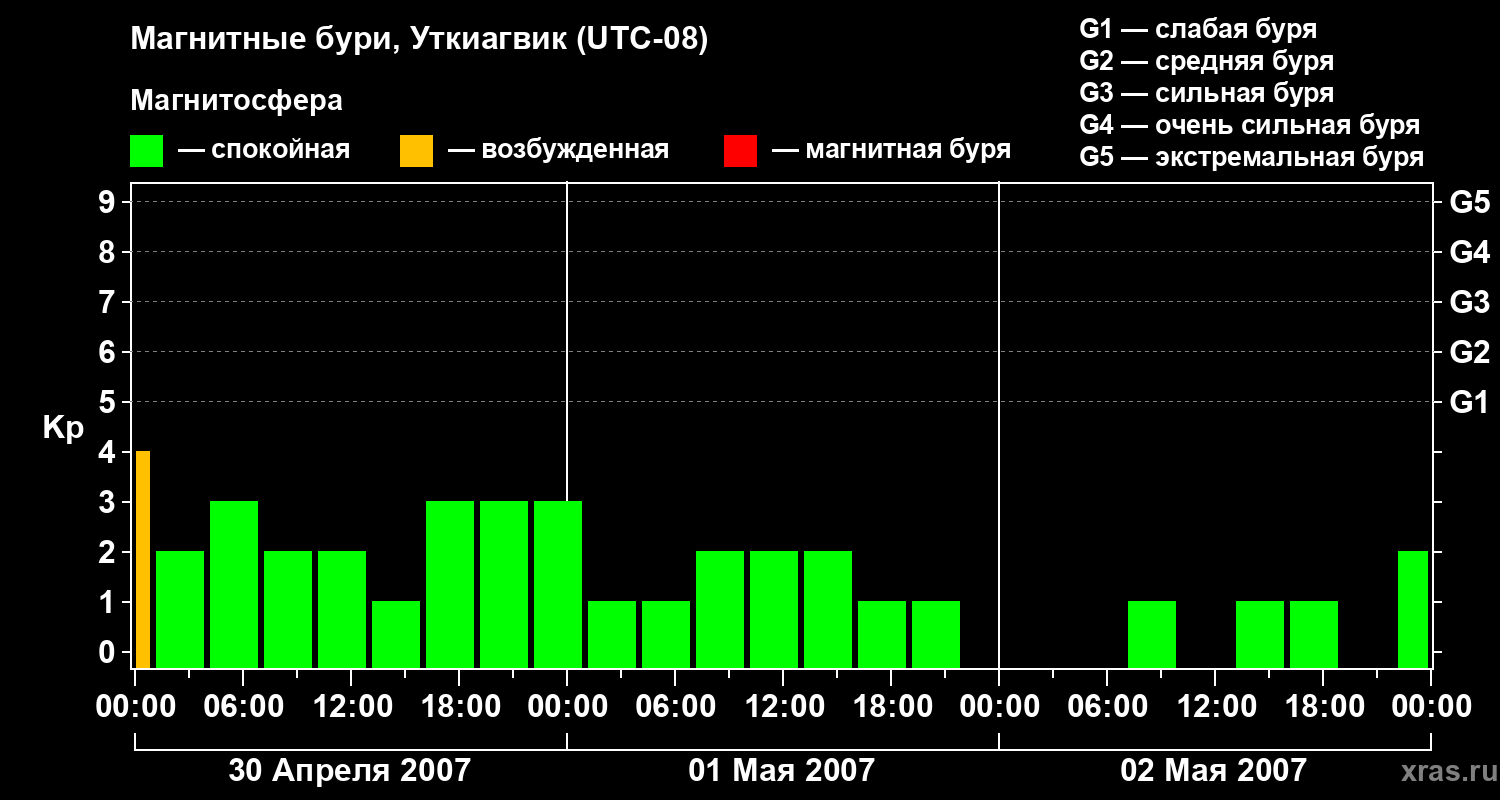 Магнитные бури в Уткиагвике — 2 мая 2007 года